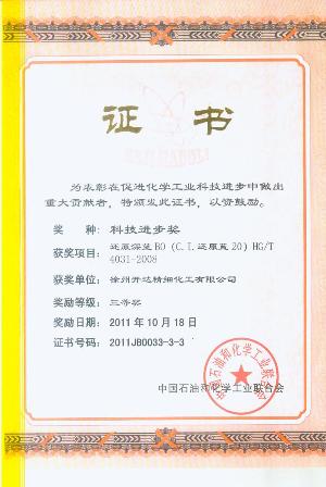 為促進整個行業(yè)產(chǎn)品質(zhì)量的提高和穩(wěn)定,我公司主持制/修訂了12項還原染料產(chǎn)品標準和1項方法標準,標準中多項指標達到國際領(lǐng)先水平。將為提升我國染料行業(yè)產(chǎn)品檔次和附加值,減少下游客戶在使用過程中的三廢排量起到積極作用。其中2項標準獲得了中石化科學(xué)進步三等獎。修訂了3個還原染料的生產(chǎn)安全技術(shù)規(guī)范,修訂后的標準成為行業(yè)強制標準。為加強企業(yè)安全生產(chǎn)監(jiān)督管理,防止和減少生產(chǎn)安全事故的要起到了指導(dǎo)作用。